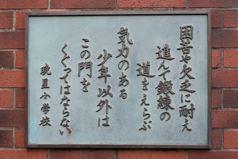 人生のバイブルとなる一節は、今でも同校の正門横に掲げられている。